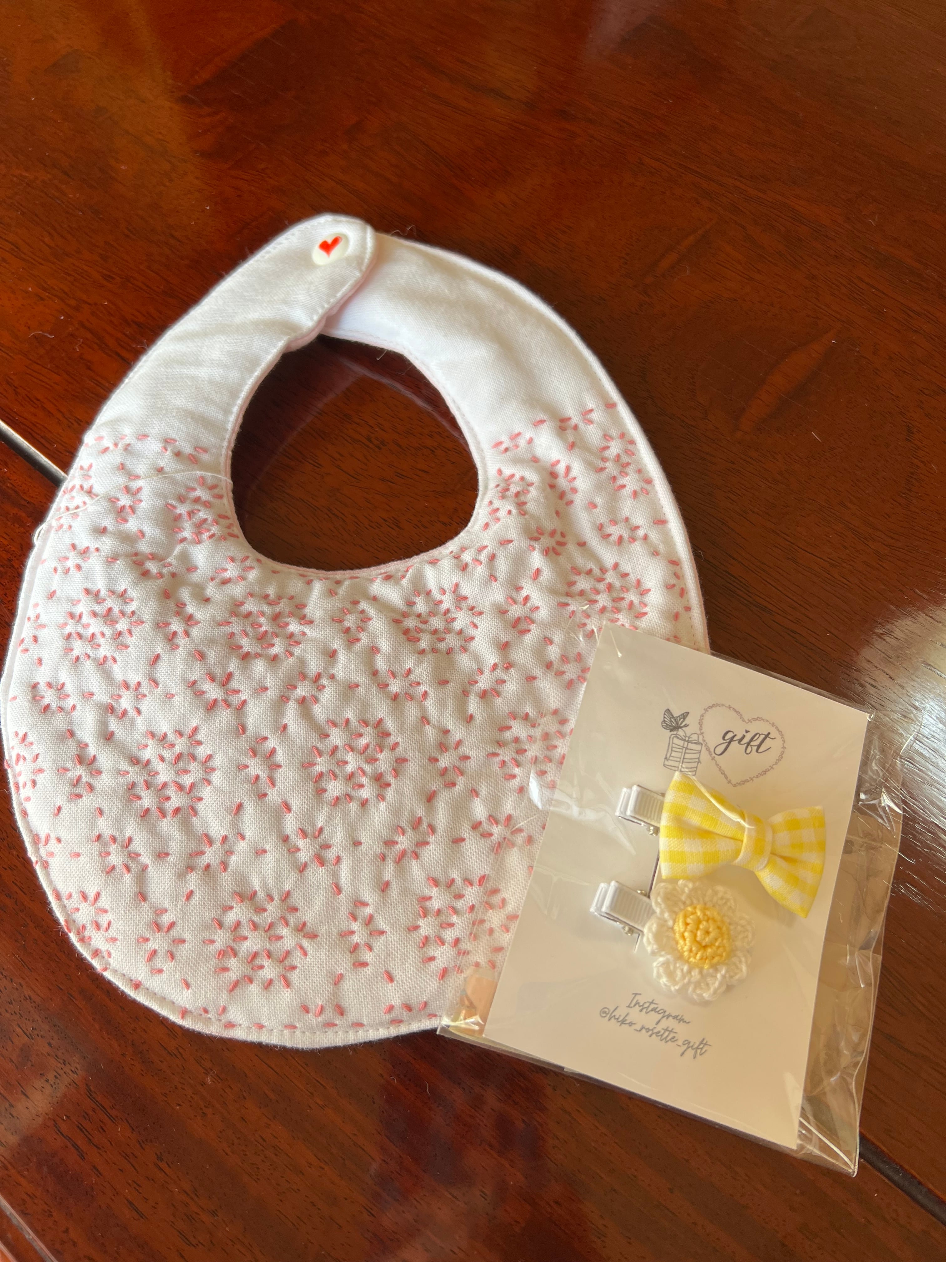 あかちゃんへのギフトにぴったり スタイとヘアアクセサリーのセット 刺し子のスタイ (まごころや) ヘアアクセサリー (gift) 商品3300円+送料185円