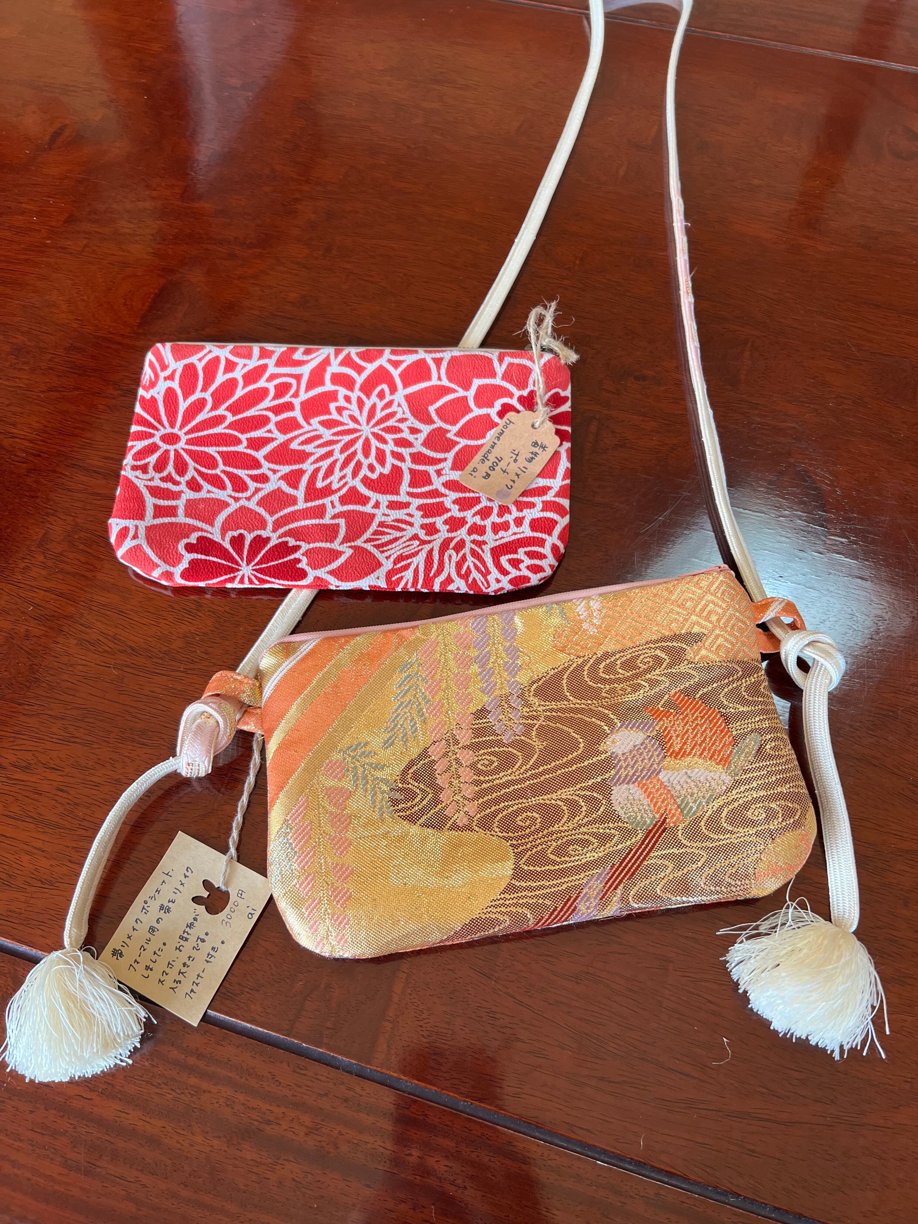 着物をアレンジしたポーチと